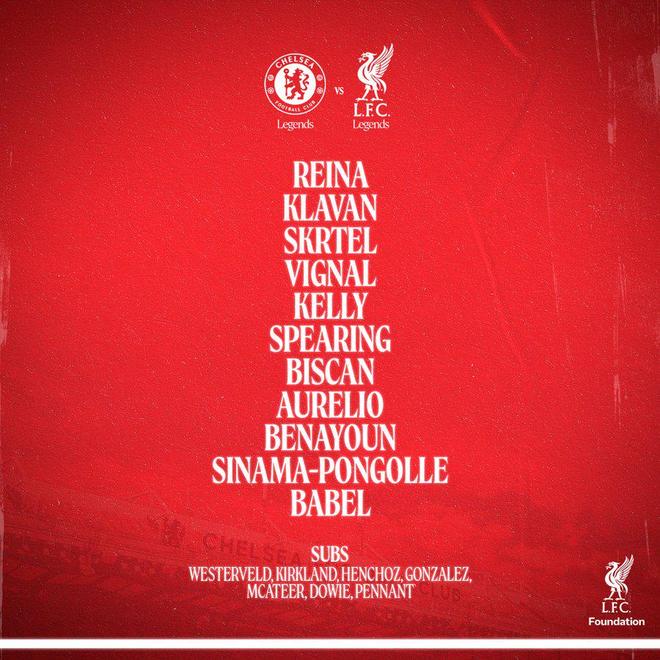 本场比赛为切尔西、利物浦两家俱乐部共同举办,比赛所得收入将用于为下属基金会筹集善款,以帮助更多困难群体。其中,主场作战的切尔西传奇队由阿扎尔、迭戈科斯塔、马克莱莱、切赫等传奇名宿领衔,利物浦则派出了由巴贝尔、贝纳永、斯科特尔、雷纳等球队名宿组成的阵容。