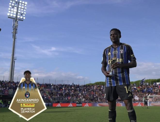 比萨的赛季首战是意大利杯第一轮,阿金桑米罗72分钟替补登场,算上补时一共打了25分钟,表现超出预期,1次抢断1次拦截,地面争抢成功率100%,传球成功率87%。完全不想一名第一次打意甲的球员——结果一看对手,切塞纳,好吧,打得还是意乙。